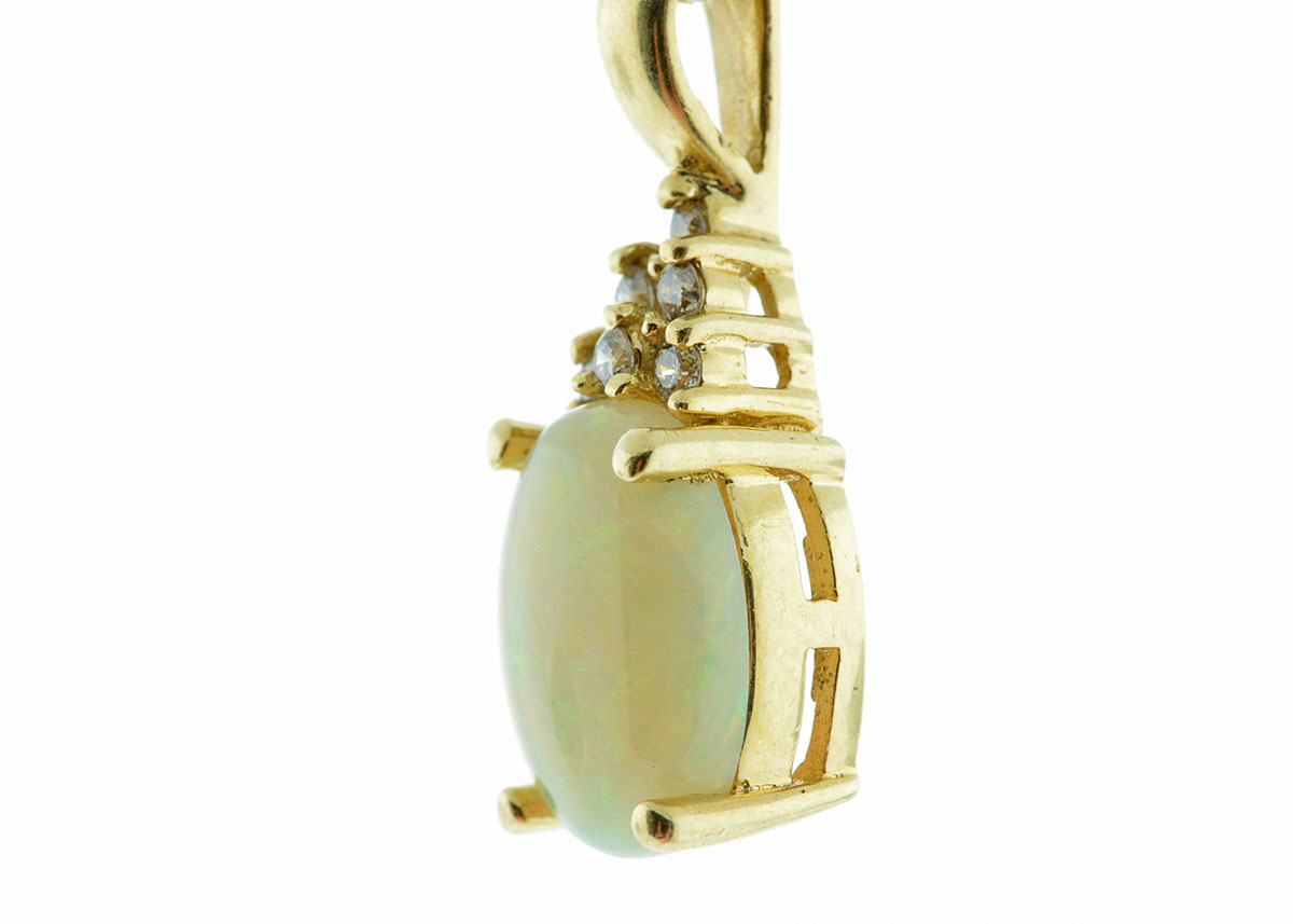 14K Gold Opal Necklace : Opal pendant australian white 14k gold diamonds Jan David USA - All Animal Jewelry